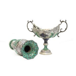 کشکول و گلدان جفت مسی قلمزنی طرح نقشینه کد 6931