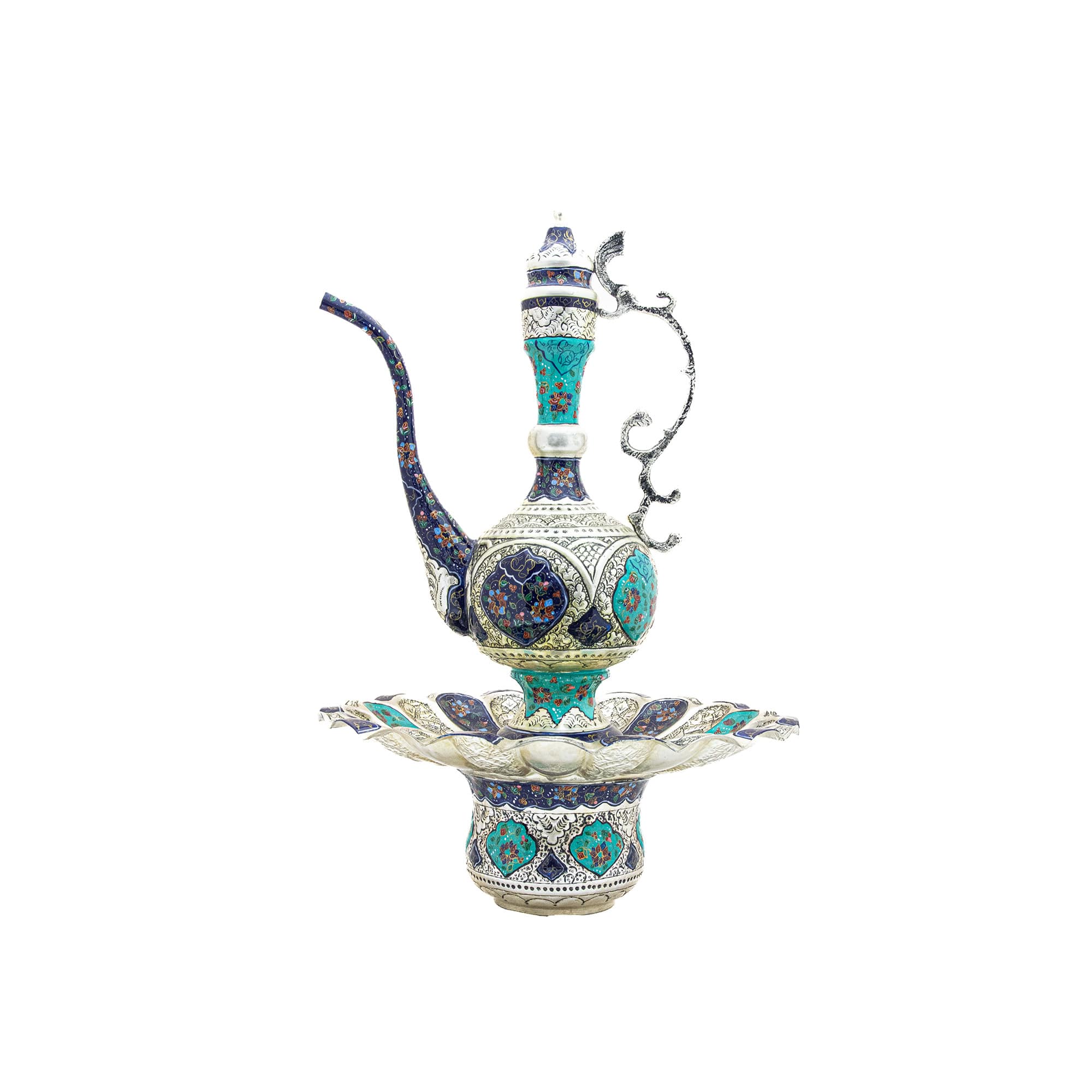آفتابه و لگن مسی قلمزنی طرح نقشینه کد 8444