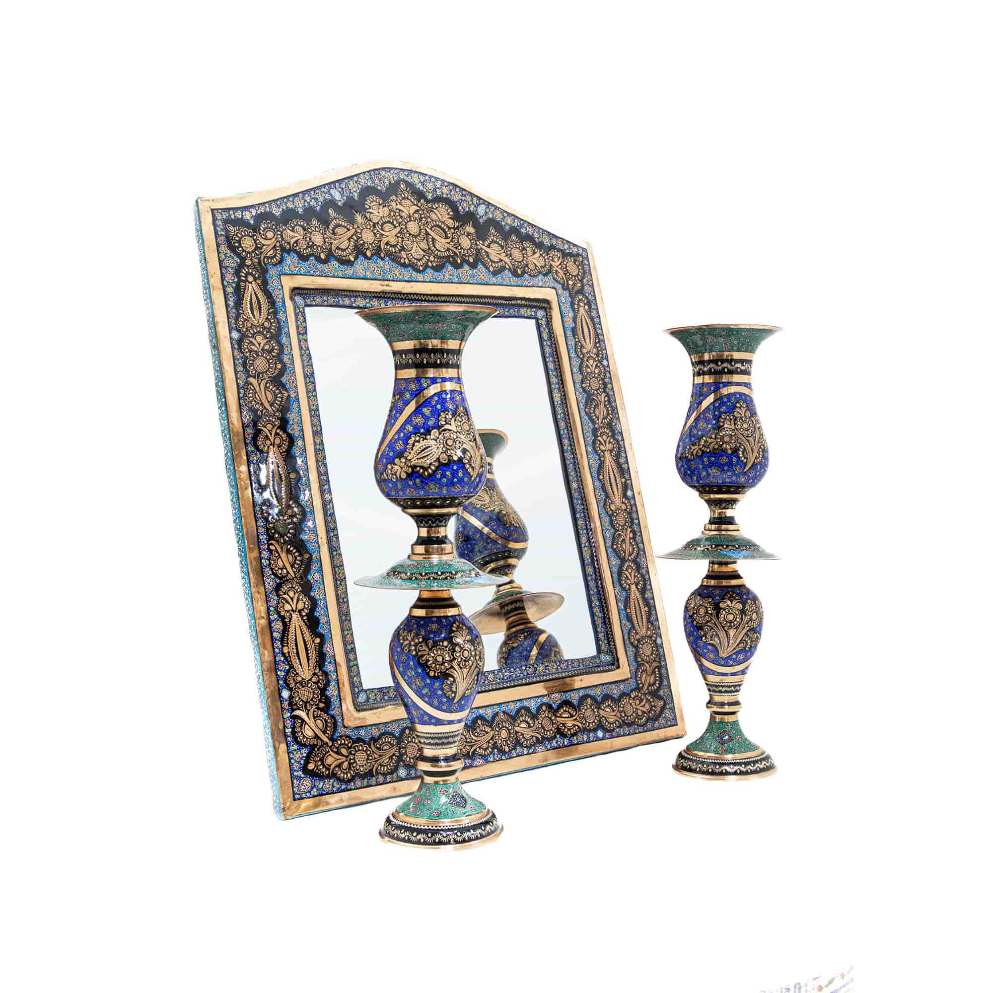 آینه و لاله جفت مسی الماس تراش طرح نقشینه کد 8144