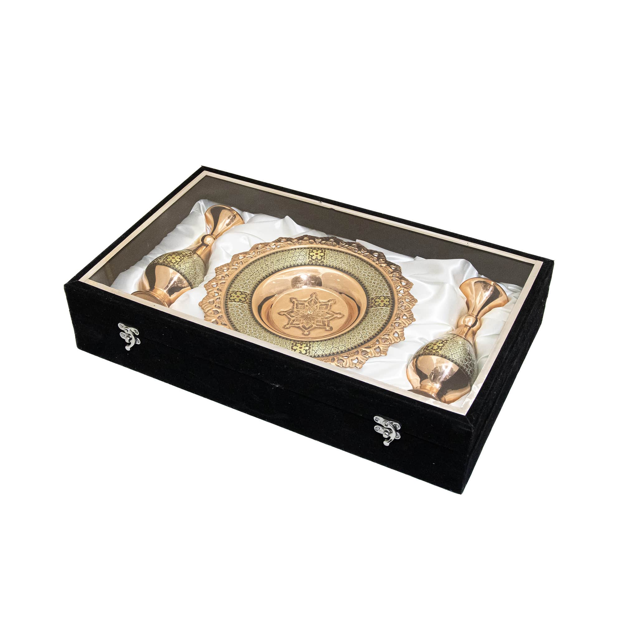 بشقاب و جفت گلدان مسی خاتم کاری کد 8480