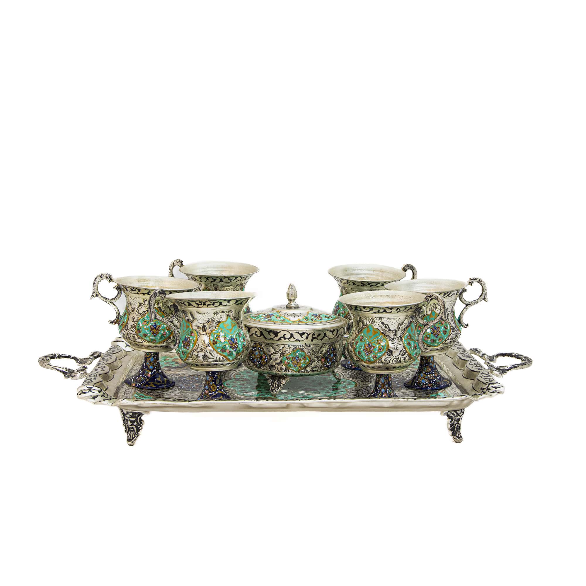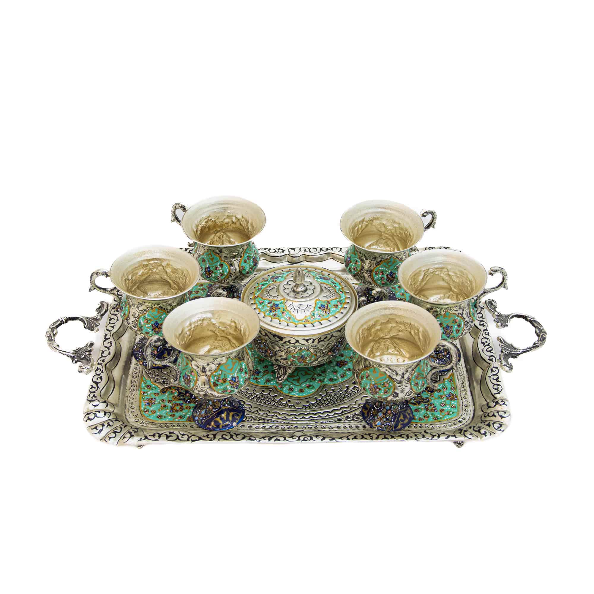 سرویس چای خوری مسی قلمزنی مدل نقشینه کد 7146