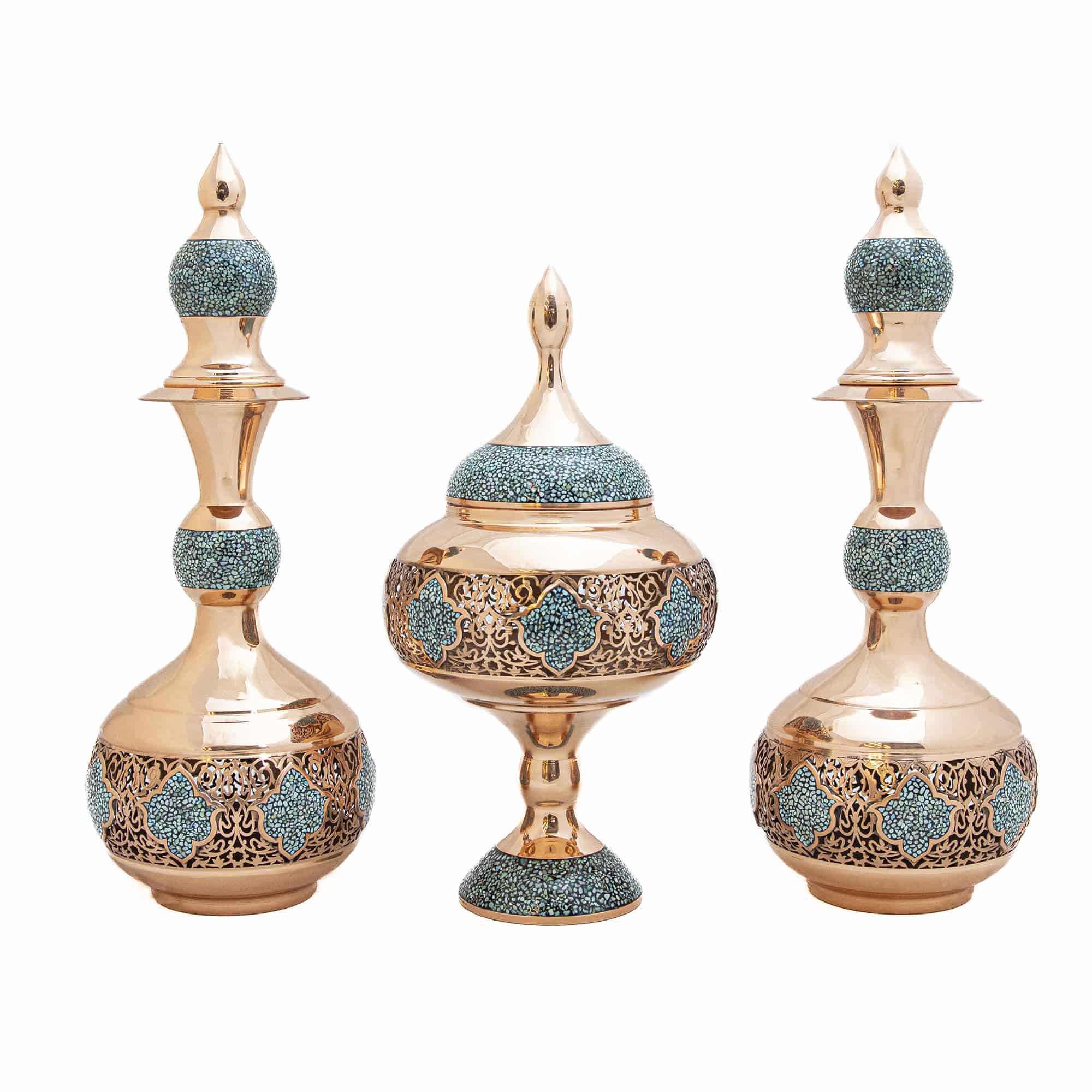 شکلات خوری و تنگ جفت مسی فیروزه کوب مدل مشبک کد 7395