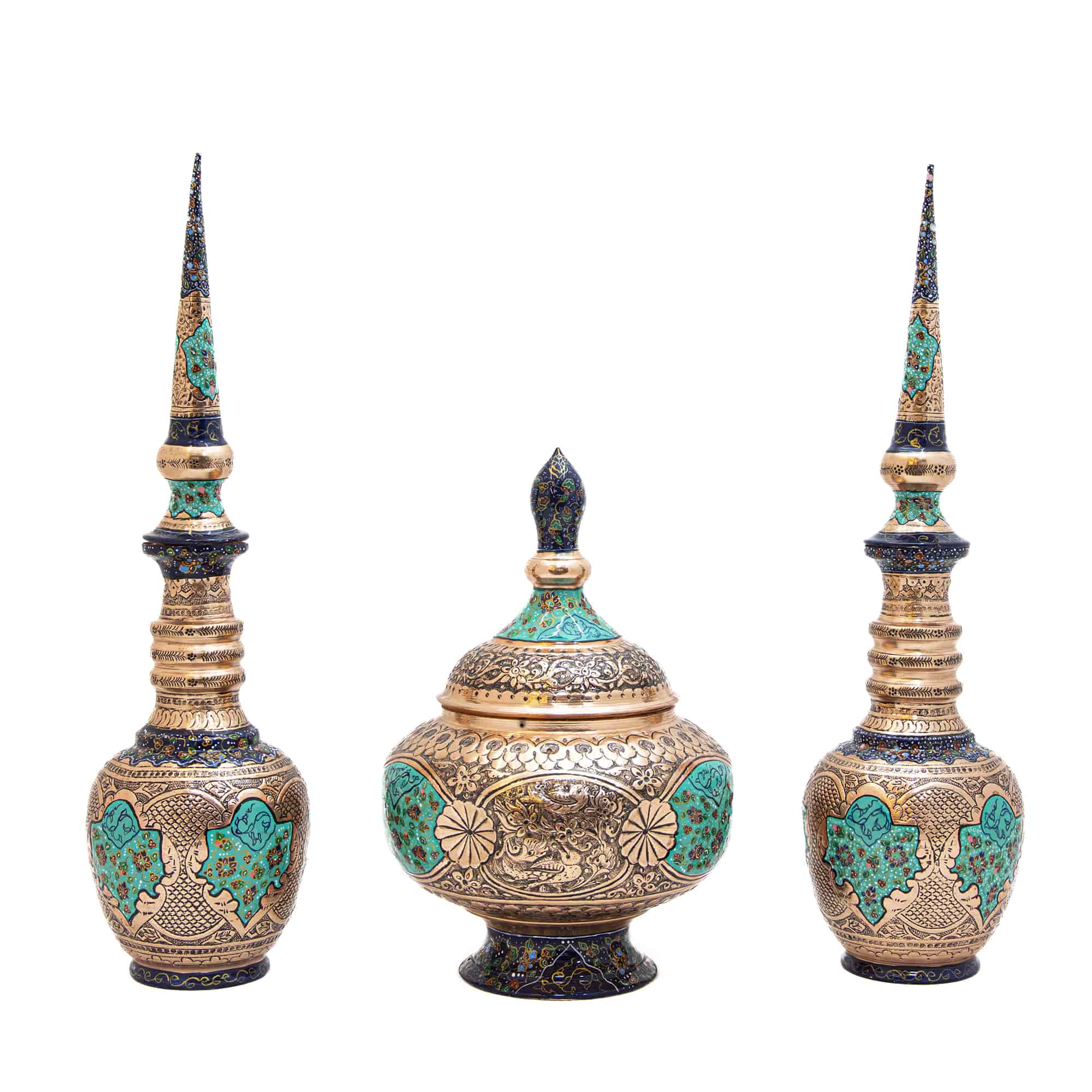 قندان و تنگ جفت مسی قلمزنی طرح نقشینه کد 7036