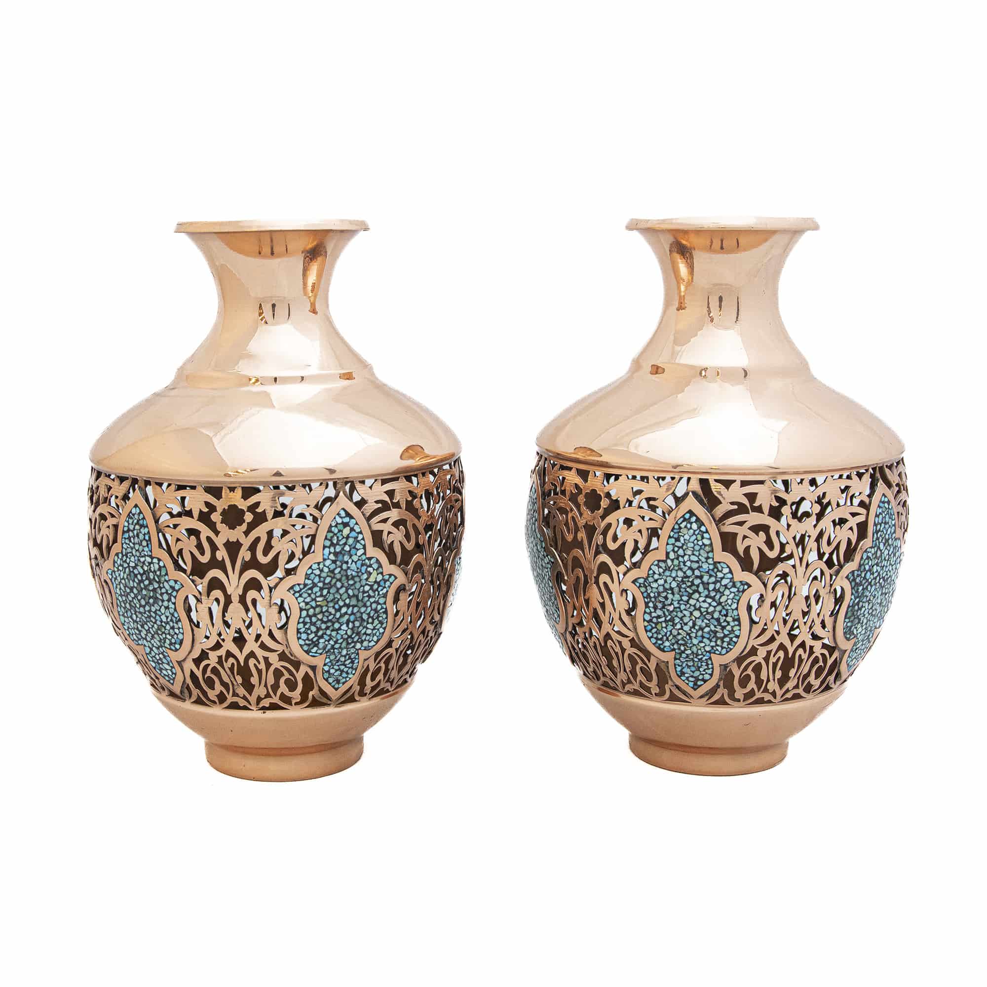 قندان و گلدان جفت مسی فیروزه کوب مدل مشبک کد 7401